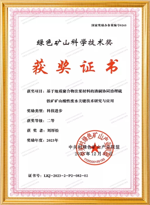 首頁(yè) > 榮譽(yù)資質(zhì) > 2023年綠色礦山科學(xué)技術(shù)獎(jiǎng) 獲獎(jiǎng)人:劉厚松