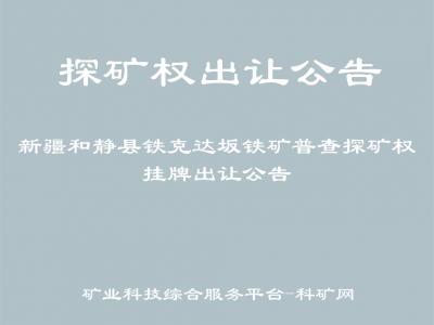 為促進(jìn)礦產(chǎn)資源勘查開采,按照相關(guān)法律法規(guī)的規(guī)定,經(jīng)自治區(qū)人民政府批準(zhǔn),受自治區(qū)自然資源廳委托,新疆維吾爾自治區(qū)政務(wù)服務(wù)和公共資源交易中心(以下簡稱交易中心)以掛牌方式出讓新疆和靜縣鐵克達(dá)坂西鐵多金屬礦(二區(qū))普查等11個探礦權(quán)。