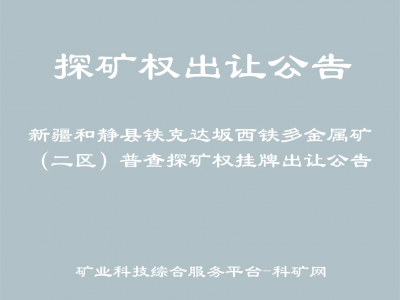 為促進(jìn)礦產(chǎn)資源勘查開(kāi)采,按照相關(guān)法律法規(guī)的規(guī)定,經(jīng)自治區(qū)人民政府批準(zhǔn),受自治區(qū)自然資源廳委托,新疆維吾爾自治區(qū)政務(wù)服務(wù)和公共資源交易中心(以下簡(jiǎn)稱(chēng)交易中心)以?huà)炫品绞匠鲎屝陆挽o縣鐵克達(dá)坂西鐵多金屬礦(二區(qū))普查等11個(gè)探礦權(quán)?,F(xiàn)將有關(guān)事項(xiàng)公告如下: