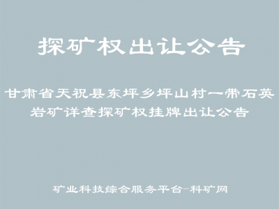 甘肅省天??h東坪鄉(xiāng)坪山村一帶石英巖礦詳查探礦權(quán)掛牌出讓公告
