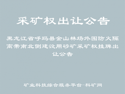 黑龍江省呼瑪縣金山林場外圍防火隔離帶南北側(cè)建設(shè)用砂礦采礦權(quán)掛牌出讓公告