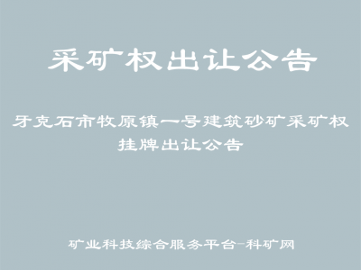 根據(jù)《中華人民共和國礦產(chǎn)資源法》《國土資源部探礦權(quán)采礦權(quán)招標(biāo)拍賣掛牌管理辦法(試行)》《礦業(yè)權(quán)交易規(guī)則》《內(nèi)蒙古自治區(qū)礦業(yè)權(quán)交易實(shí)施細(xì)則》等有關(guān)規(guī)定,經(jīng)牙克石市人民政府批準(zhǔn),牙克石市自然資源局?jǐn)M對“牙克石市牧原鎮(zhèn)一號建筑砂礦”以掛牌方式公開出讓?,F(xiàn)將有關(guān)事宜公告如下: