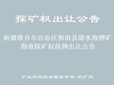 為促進礦產(chǎn)資源勘查開采,按照相關(guān)法律法規(guī)規(guī)定,自然資源部組織新疆維吾爾自治區(qū)自然資源廳實施新疆維吾爾自治區(qū)和田縣甜水海鋰礦勘查等3宗鋰礦探礦權(quán)掛牌出讓。