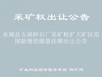 受六盤水市水城區(qū)自然資源局委托,六盤水市公共資源交易中心(以下簡稱“交易中心”)按照相關法律法規(guī)的規(guī)定,以掛牌方式公開出讓水城區(qū)通運砂石廠等13宗采礦權擴大礦區(qū)范圍新增資源量?,F(xiàn)將有關事項公告如下:
