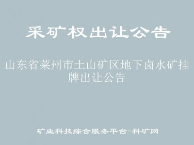 根據(jù)《中華人民共和國民法典》、《中華人民共和國礦產(chǎn)資源法》、《中華人民共和國電子簽名法》、《礦業(yè)權(quán)出讓交易規(guī)則》(自然資規(guī)〔2023〕1號)、《財(cái)政部 自然資源部 稅務(wù)總局關(guān)于印發(fā)《礦業(yè)權(quán)出讓收益征收辦法》的通知》(財(cái)綜〔2023〕10號)、《山東省礦業(yè)權(quán)網(wǎng)上交易規(guī)則》(魯自然資規(guī)〔2020〕6號)、《山東省自然資源廳 山東省財(cái)政廳關(guān)于公布山東省礦業(yè)權(quán)出讓收益起始價(jià)標(biāo)準(zhǔn)的通告》(魯自然資規(guī)〔2023〕5號)等有關(guān)規(guī)定,萊州市自然資源和規(guī)劃局?jǐn)M對山東省萊州市土山礦區(qū)地下鹵水礦采礦權(quán)進(jìn)行網(wǎng)上掛牌出讓?,F(xiàn)將有關(guān)事項(xiàng)公告如下: