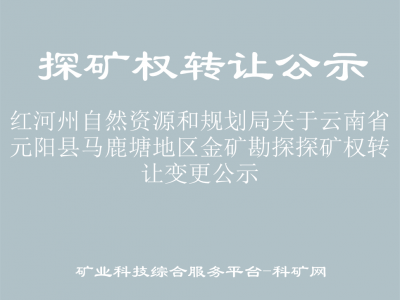 根據(jù)礦業(yè)權(quán)轉(zhuǎn)讓變更相關(guān)規(guī)定和要求,現(xiàn)將“云南省元陽縣馬鹿塘地區(qū)金礦勘探”探礦權(quán)轉(zhuǎn)讓變更情況公告如下: