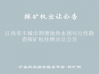 為促進(jìn)礦產(chǎn)資源勘查開采,按照相關(guān)法律法規(guī)和規(guī)范性文件規(guī)定,江西省自然資源廳組織江西省豐城市荊塘地?zé)崴A(yù)可行性勘查探礦權(quán)網(wǎng)上掛牌出讓。