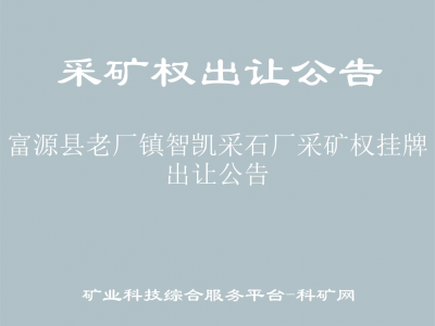 經(jīng)富源縣人民政府批準,富源縣自然資源局委托富源縣公共資源交易中心對富源縣老廠鎮(zhèn)智凱采石廠采礦權公開掛牌出讓,現(xiàn)將有關事項公告如下: