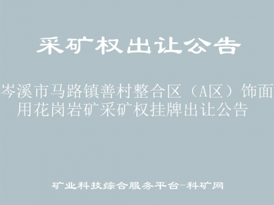 根據(jù)《自然資源部關(guān)于印發(fā)礦業(yè)權(quán)出讓交易規(guī)則的通知》(自然資規(guī)〔2023〕1號(hào))、《財(cái)政部 自然資源部 稅務(wù)總局關(guān)于印發(fā)〈礦業(yè)權(quán)出讓收益征收辦法〉的通知》(財(cái)綜〔2023〕10號(hào))和《廣西壯族自治區(qū)自然資源廳關(guān)于印發(fā)<廣西壯族自治區(qū)礦業(yè)權(quán)交易管理辦法的通知>通知》(桂自然資規(guī)[2019]1號(hào))文件有關(guān)規(guī)定,受梧州市自然資源局委托,梧州市國土資源交易中心組織實(shí)施“岑溪市馬路鎮(zhèn)善村整合區(qū)(A區(qū))飾面用花崗巖礦”采礦權(quán)掛牌出讓的具體工作,現(xiàn)將有關(guān)事項(xiàng)公告如下: