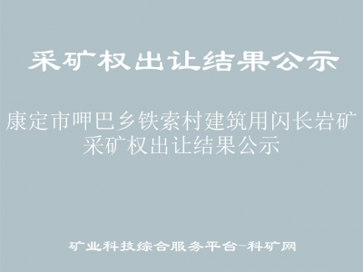 根據(jù)《中華人民共和國礦產(chǎn)資源法》《礦業(yè)權交易規(guī)則》(自然資規(guī)〔2023〕1號)等法律、法規(guī)和規(guī)章規(guī)定,康定市自然資源局委托甘孜州政務服務和公共資源交易服務中心以網(wǎng)上拍賣方式公開出讓康定市呷巴鄉(xiāng)鐵索村建筑用閃長巖礦采礦權?,F(xiàn)將出讓結果公示如下:
