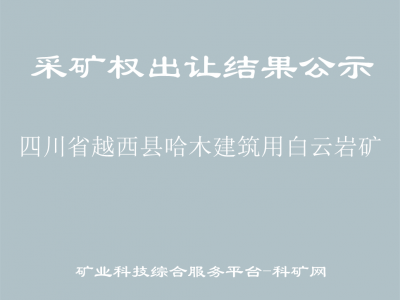 根據(jù)《中華人民共和國(guó)礦產(chǎn)資源法》《探礦權(quán)采礦權(quán)招標(biāo)拍賣掛牌管理辦法(試行)》《自然資源部關(guān)于印發(fā)礦業(yè)權(quán)出讓交易規(guī)則的通知》(自然資規(guī)〔2023〕1號(hào))《自然資源部關(guān)于深化礦產(chǎn)資源管理改革若干事項(xiàng)的意見》(自然資規(guī)〔2023〕6號(hào))《財(cái)政部 自然資源部 稅務(wù)總局關(guān)于印發(fā)<礦業(yè)權(quán)出讓收益征收辦法>的通知》(財(cái)綜〔2023〕10號(hào))《四川省自然資源廳關(guān)于貫徹落實(shí)〈自然資源部關(guān)于推進(jìn)礦產(chǎn)資源管理改革若干事項(xiàng)的意見(試行)〉精神若干事項(xiàng)的通知》(川自然資規(guī)〔2020〕9號(hào))等文件規(guī)定,報(bào)經(jīng)涼山州人民政府批準(zhǔn),受涼山州自然資源局委托,涼山州公共資源交易服務(wù)中心組織實(shí)施四川省越西縣哈木建筑用白云巖礦掛牌出讓工作,現(xiàn)將有關(guān)事項(xiàng)公告如下。