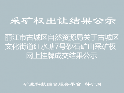 如對(duì)本采礦權(quán)掛牌出讓公示結(jié)果有異議的,請(qǐng)?jiān)诠酒谙迌?nèi)持書面材料到麗江市古城區(qū)自然資源局辦理核查手續(xù),逾期沒有提出異議的,即認(rèn)為公示結(jié)果有效,麗江市古城區(qū)自然資源局將依法辦理采礦權(quán)登記并頒發(fā)采礦許可證。