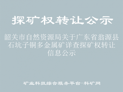 韶關(guān)市自然資源局關(guān)于廣東省翁源縣石坑子銅多金屬礦詳查探礦權(quán)轉(zhuǎn)讓信息公示