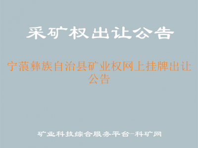 根據(jù)《中華人民共和國礦產(chǎn)資源法》、《自然資源部關(guān)于印發(fā)礦業(yè)權(quán)出讓交易規(guī)則的通知》(自然資規(guī)〔2023〕1號)等有關(guān)規(guī)定,經(jīng)寧蒗縣人民政府批準(zhǔn),受寧蒗縣自然資源局委托,寧蒗縣公共資源交易中心將網(wǎng)上公開掛牌出讓1宗礦業(yè)(采礦)權(quán)。