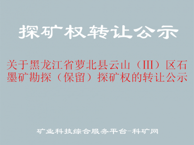 根據(jù)自然資源部關(guān)于印發(fā)《礦業(yè)權(quán)出讓交易規(guī)則》的通知(自然資規(guī)[2023]1號(hào))有關(guān)規(guī)定,現(xiàn)將黑龍江省蘿北縣云山(Ⅲ)區(qū)石墨礦勘探(保留)探礦權(quán)轉(zhuǎn)讓有關(guān)事項(xiàng)說(shuō)明如下: