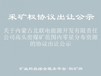 根據(jù)《自然資源部關(guān)于印發(fā)礦業(yè)權(quán)出讓交易規(guī)則的通知》(自然資規(guī)〔2023〕1號)有關(guān)規(guī)定,現(xiàn)將內(nèi)蒙古北聯(lián)電能源開發(fā)有限責(zé)任公司高頭窯煤礦范圍內(nèi)零星分布煤炭資源采礦權(quán)協(xié)議出讓有關(guān)事項(xiàng)公示如下:
