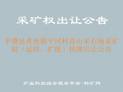根據(jù)《中華人民共和國礦產(chǎn)資源法》礦產(chǎn)資源開采登記管理辦法》貴州省礦業(yè)權(quán)出讓制度改革試點實施方案》,我局委托黔南州公共資源交易中心對平塘縣者密鎮(zhèn)平河村青山采石場采礦權(quán)(延續(xù)、擴能),公告如下: