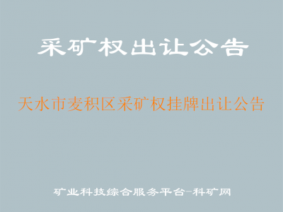 根據(jù)《中華人民共和國礦產(chǎn)資源法》《探礦權采礦權招標拍賣掛牌管理辦法(試行)》《礦業(yè)權出讓交易規(guī)則》等法律法規(guī),天水市自然資源局麥積分局對天水市麥積區(qū)琥珀鎮(zhèn)霍家川磚瓦用粘土礦采礦權掛牌出讓?,F(xiàn)將有關事項公告如下: