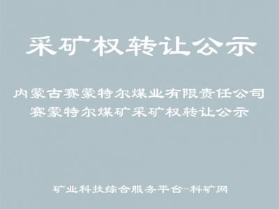 根據(jù)《探礦權(quán)采礦權(quán)轉(zhuǎn)讓管理辦法》(國務(wù)院令242號)、《自然資源部關(guān)于印發(fā)礦業(yè)權(quán)出讓交易規(guī)則的通知》(自然資規(guī)〔2023〕1號)等相關(guān)規(guī)定,現(xiàn)將內(nèi)蒙古賽蒙特爾煤業(yè)有限責(zé)任公司賽蒙特爾煤礦采礦權(quán)轉(zhuǎn)讓有關(guān)事項公示如下: