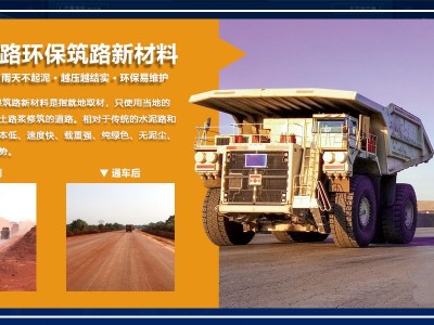 重載道路環(huán)保筑路新材料是指就地取材,只使用當(dāng)?shù)氐耐寥郎笆?,添加土路漿修筑的道路。相對于傳統(tǒng)的水泥路和瀝青路,具有成本低、速度快、載重強、純綠色、無泥塵、免維護(hù)等突出優(yōu)勢。
