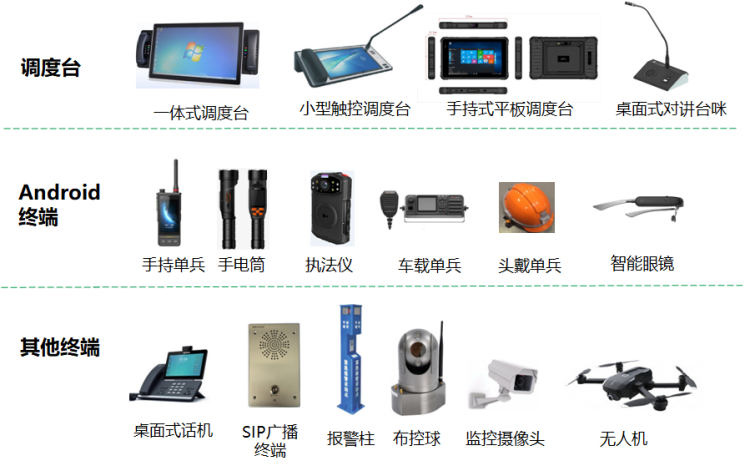 語音功能:單呼、會議、對講、廣播、撥號盤、多媒體消息、集群對講、現(xiàn)場圖傳等。