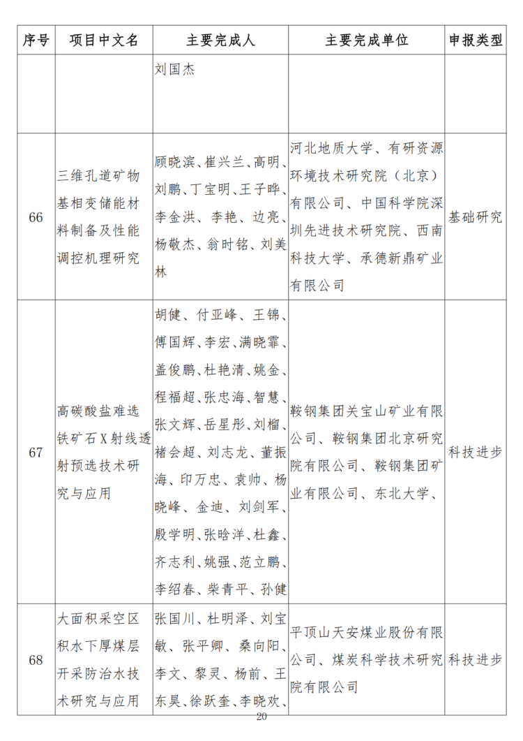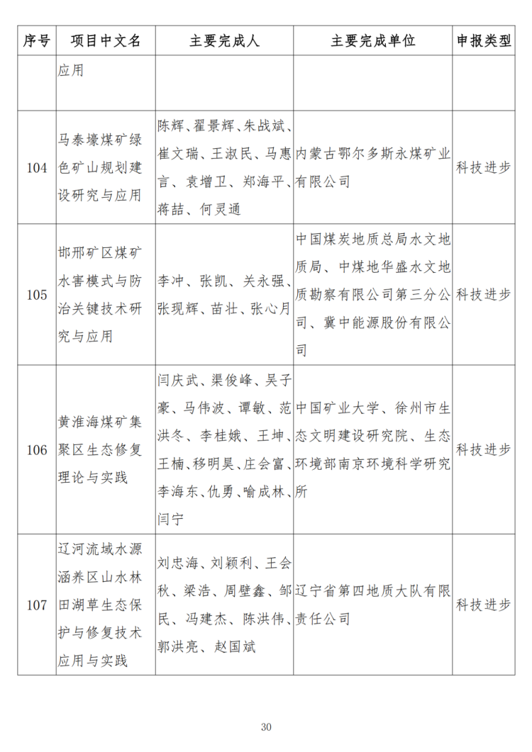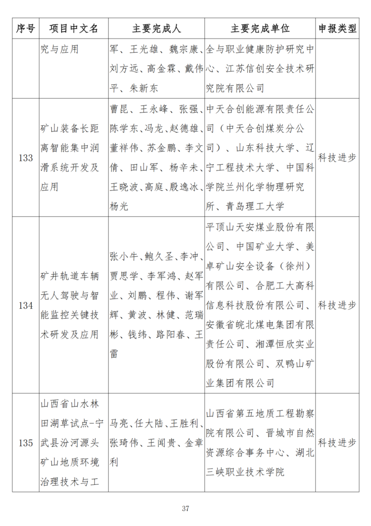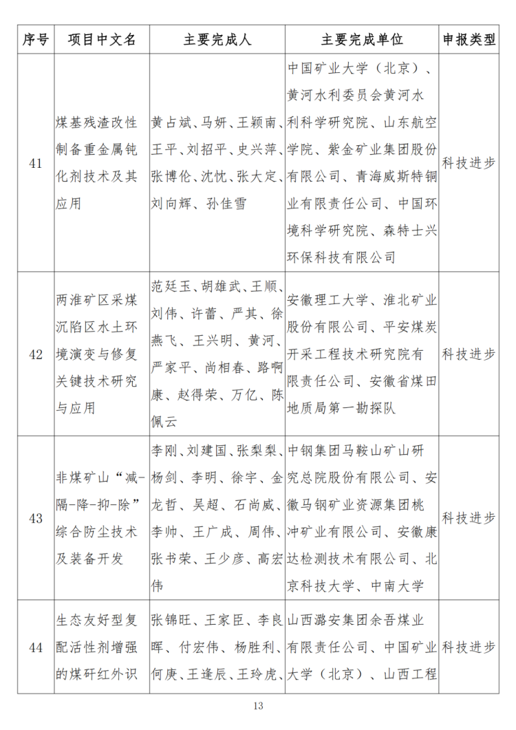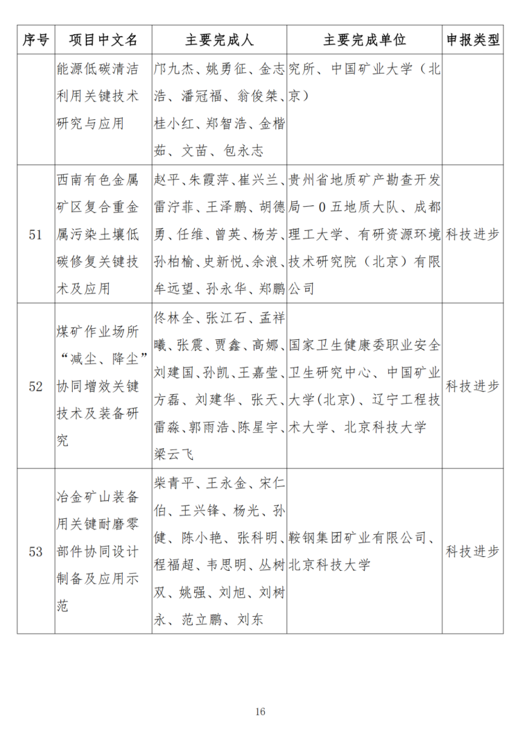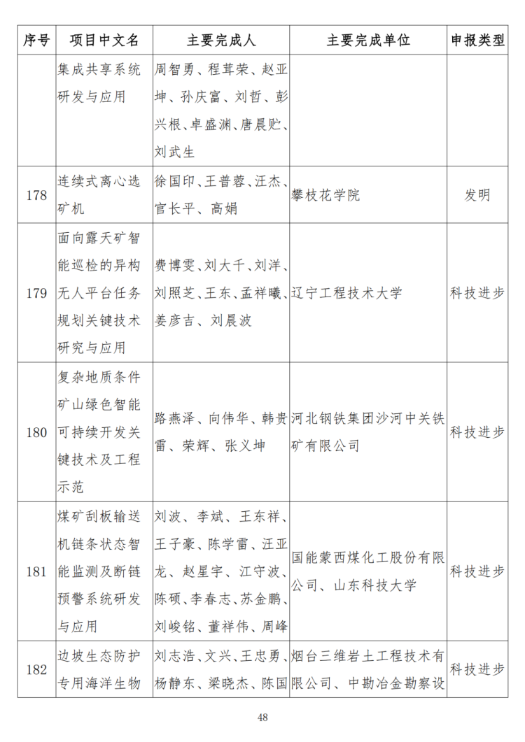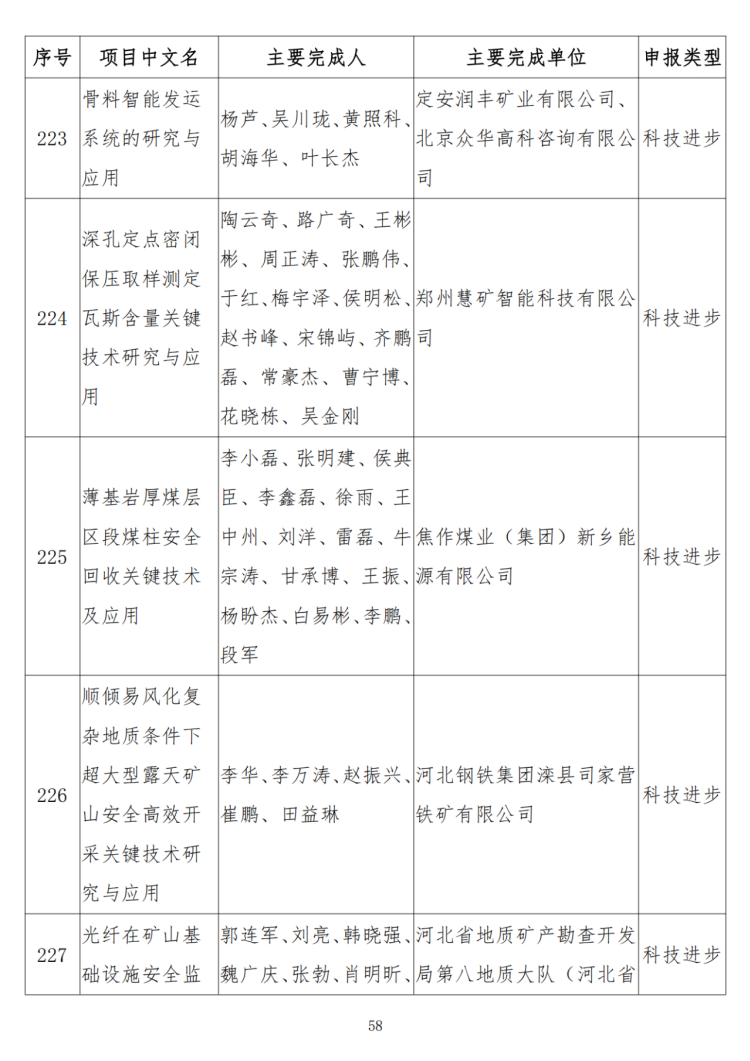 全體會員及各相關(guān)人員:依據(jù)《綠色礦山科學(xué)技術(shù)獎管理辦法》規(guī)定和《關(guān)于申報2024年度綠色礦山科學(xué)技術(shù)獎的通知》的要求,綠色礦山科學(xué)技術(shù)獎勵辦公室對申報綠色礦山科學(xué)技術(shù)獎(國家獎勵辦備案編號0265)的基礎(chǔ)研究、科技進步、發(fā)明(專利)三類獎項通過申報、形式審查、初評、終評、復(fù)核等環(huán)節(jié),確定了235項成果為2024年度綠色礦山科學(xué)技術(shù)獎的擬獲獎項目,現(xiàn)進行公示。一等獎完成人不超過15人、二等獎完成人不超過10人、三等獎完成人不超過5人。對于完成人超過限額的項目,請與綠色礦山科學(xué)技術(shù)獎勵辦公室聯(lián)系。自公示之日起7日內(nèi),任何單位以及個人對擬獲獎名單有異議者,須以本人真實身份以書面形式向綠色礦山科學(xué)技術(shù)獎勵辦公室提出,同時需要提供準(zhǔn)確的相關(guān)材料。凡是匿名異議以及超過公示期內(nèi)提出異議者恕不予受理。特此公示。聯(lián)系方式: 聯(lián)系人:呂老師 15712878741通訊地址:北京市海淀區(qū)學(xué)清路9號匯智大廈B座311室