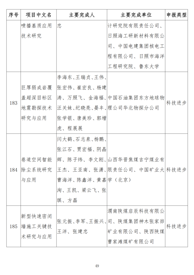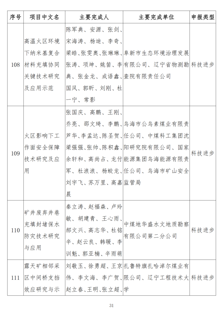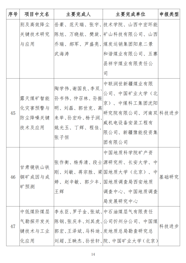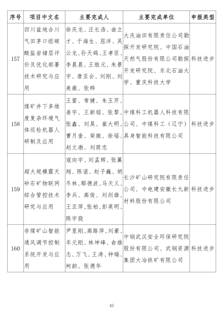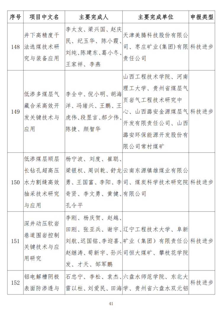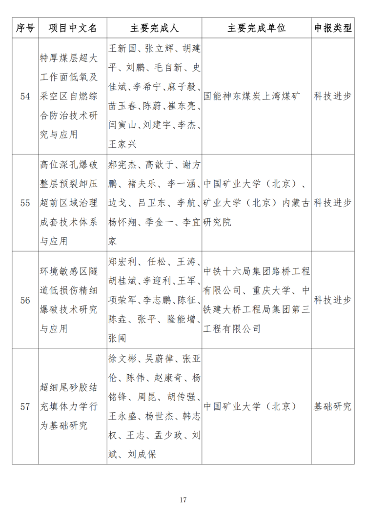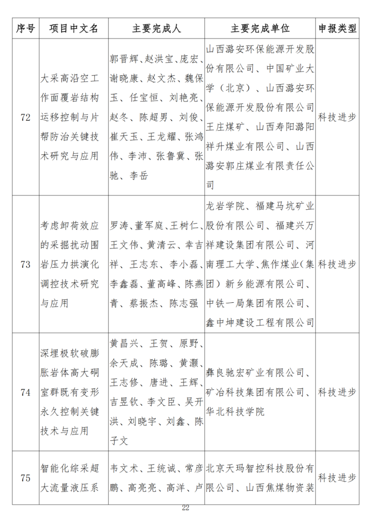 全體會員及各相關(guān)人員:依據(jù)《綠色礦山科學(xué)技術(shù)獎管理辦法》規(guī)定和《關(guān)于申報2024年度綠色礦山科學(xué)技術(shù)獎的通知》的要求,綠色礦山科學(xué)技術(shù)獎勵辦公室對申報綠色礦山科學(xué)技術(shù)獎(國家獎勵辦備案編號0265)的基礎(chǔ)研究、科技進步、發(fā)明(專利)三類獎項通過申報、形式審查、初評、終評、復(fù)核等環(huán)節(jié),確定了235項成果為2024年度綠色礦山科學(xué)技術(shù)獎的擬獲獎項目,現(xiàn)進行公示。一等獎完成人不超過15人、二等獎完成人不超過10人、三等獎完成人不超過5人。對于完成人超過限額的項目,請與綠色礦山科學(xué)技術(shù)獎勵辦公室聯(lián)系。自公示之日起7日內(nèi),任何單位以及個人對擬獲獎名單有異議者,須以本人真實身份以書面形式向綠色礦山科學(xué)技術(shù)獎勵辦公室提出,同時需要提供準(zhǔn)確的相關(guān)材料。凡是匿名異議以及超過公示期內(nèi)提出異議者恕不予受理。特此公示。聯(lián)系方式: 聯(lián)系人:呂老師 15712878741通訊地址:北京市海淀區(qū)學(xué)清路9號匯智大廈B座311室