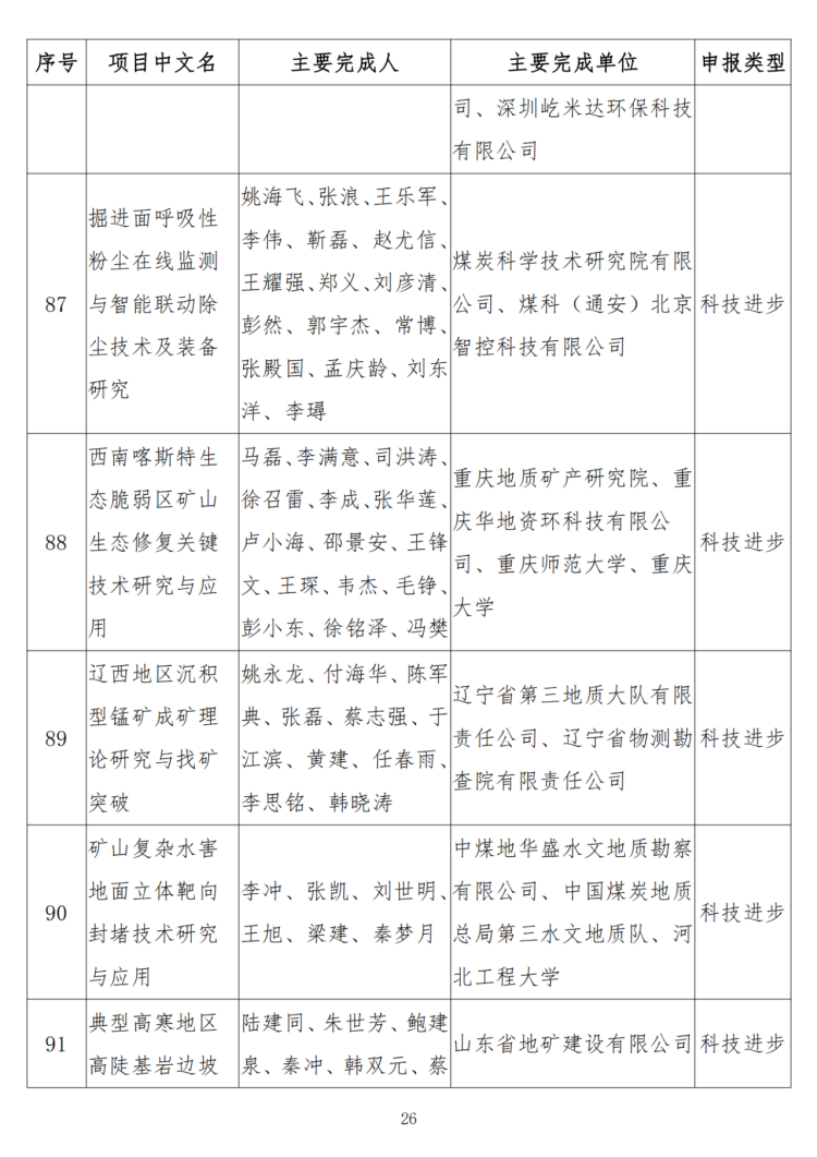 附:2024年度綠色礦山科學(xué)技術(shù)獎擬獲獎項目