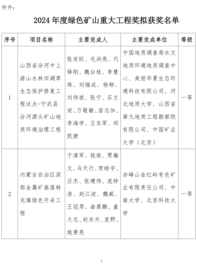 關(guān)于2024年度綠色礦山重大工程獎(jiǎng)擬獲獎(jiǎng)名單的公示
