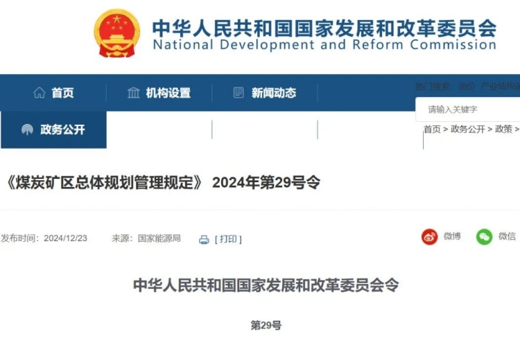 核心提示:據(jù)國家發(fā)改委網(wǎng)站12月23日消息,《煤炭礦區(qū)總體規(guī)劃管理規(guī)定》已經(jīng)2024年12月2日第19次委務(wù)會議審議通過,現(xiàn)予公布,自2025年2月