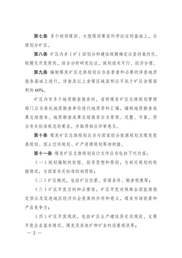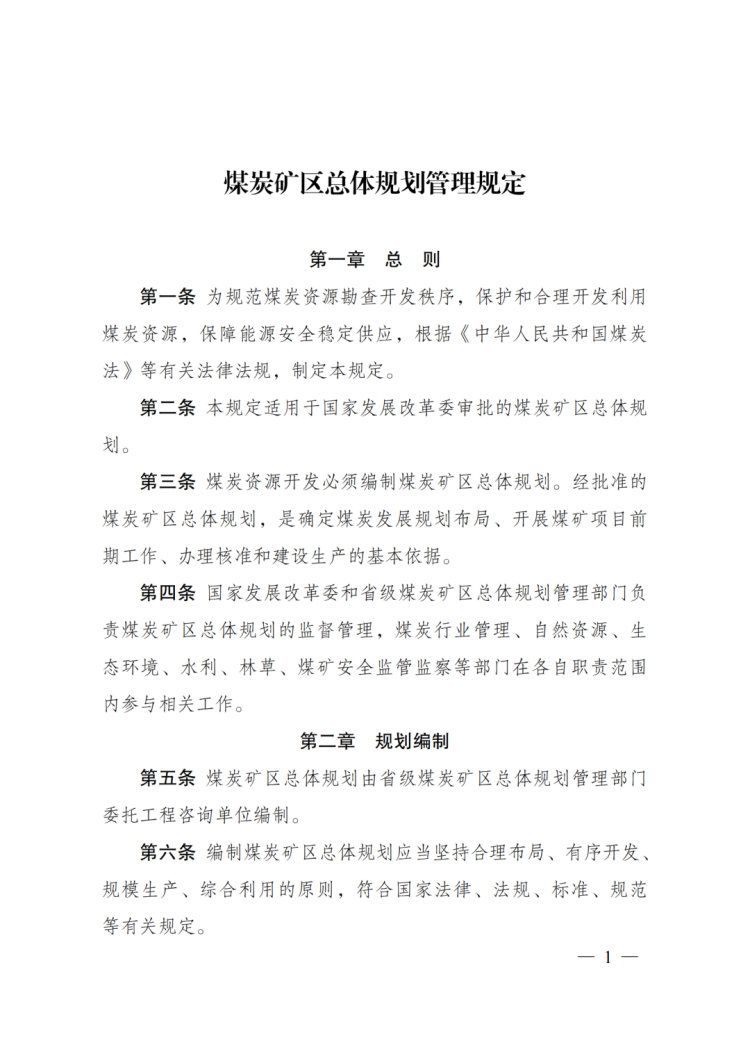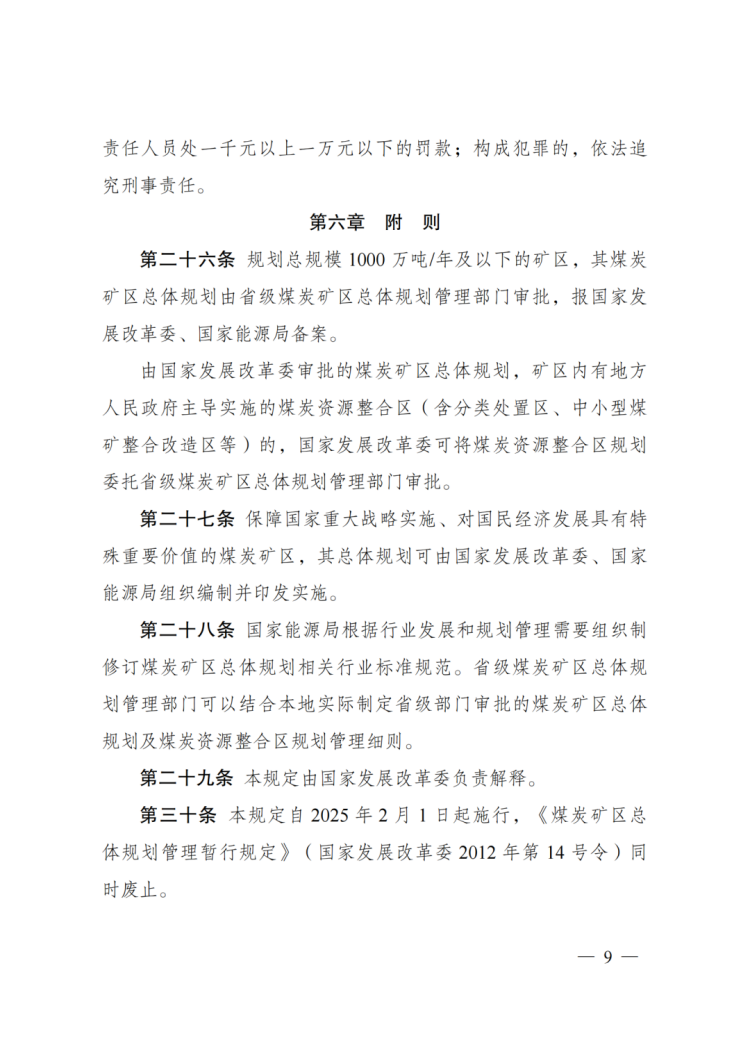 《煤炭礦區(qū)總體規(guī)劃管理規(guī)定》發(fā)布!自2025年2月1日起施行!