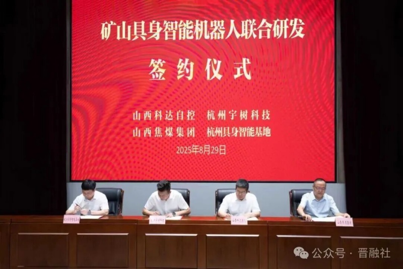 8月29日,山西焦煤能源集團股份有限公司(以下簡稱“山西焦煤”)、山西科達自控股份有限公司(以下簡稱“科達自控”)、杭州宇樹科技股份有限公司(以下簡稱“宇樹科技”)、杭州具身智能中試基地科技有限公司(以下簡稱“杭州中試基地”)在山西轉型綜改示范區(qū)舉行礦山具身智能機器人聯(lián)合研發(fā)簽約儀式。