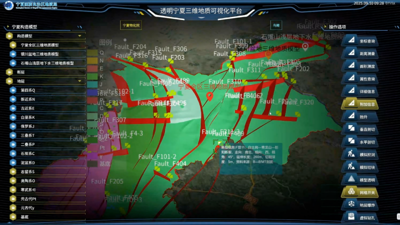 “透明寧夏”項(xiàng)目成功構(gòu)建起涵蓋14個(gè)標(biāo)準(zhǔn)地層、28條主要斷裂的高精度三維地質(zhì)模型,從最年輕的第四系沉積物到最古老的基底巖系,模型精細(xì)刻畫(huà)了數(shù)億年的地質(zhì)演化史,將寧夏大地深部的“生命密碼”層層解碼。