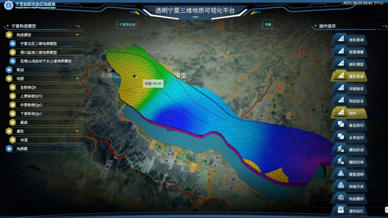 尤其針對(duì)銀川盆地構(gòu)建的地?zé)釋傩阅P?,?xiàng)目清晰展示了地?zé)豳Y源的分布規(guī)律和賦存特征,為清潔能源開(kāi)發(fā)提供了“導(dǎo)航”,開(kāi)創(chuàng)了地?zé)豳Y源三維可視化評(píng)價(jià)的新模式。
