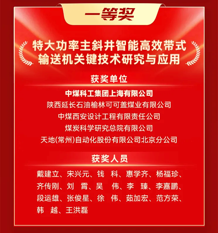 12月10日,2025年度中國煤炭工業(yè)協(xié)會科學(xué)技術(shù)獎評選結(jié)果在北京揭曉,中國煤科常州研究院(常州股份)牽頭完成的“煤礦井下星網(wǎng)構(gòu)建關(guān)鍵技術(shù)開發(fā)與應(yīng)用”榮獲一等獎,中國煤科常州研究院(常州股份)參與完成的“特大功率主斜井智能高效帶式輸送機(jī)關(guān)鍵技術(shù)研究與應(yīng)用”榮獲一等獎。