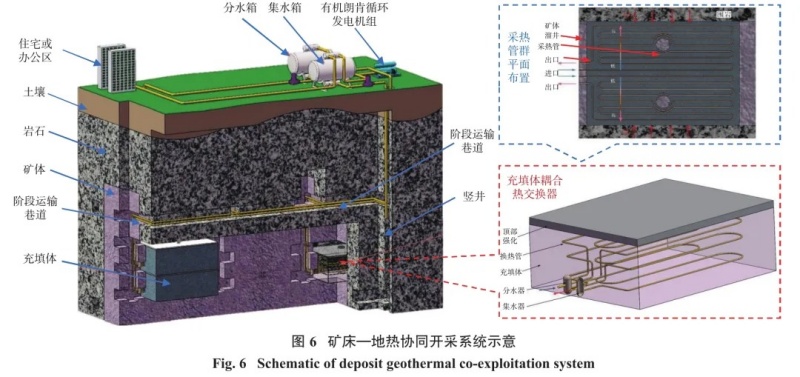 (2)“向地球深部進軍”是我國必須解決的戰(zhàn)略科技問題,隨著淺部資源的枯竭,深部開采將成為常態(tài),深部開采面臨的高地溫問題,使勞動效率大幅下降和生產(chǎn)事故大量增加,同時還會降低井下設(shè)備的工作性能。地熱是一種清潔能源,因此可將礦山充填、深井降溫與地熱開發(fā)有機結(jié)合,從而拓展充填的功能,大幅降低深井降溫與充填成本,革新充填采礦技術(shù),實現(xiàn)礦山綠色、安全、高效開采。