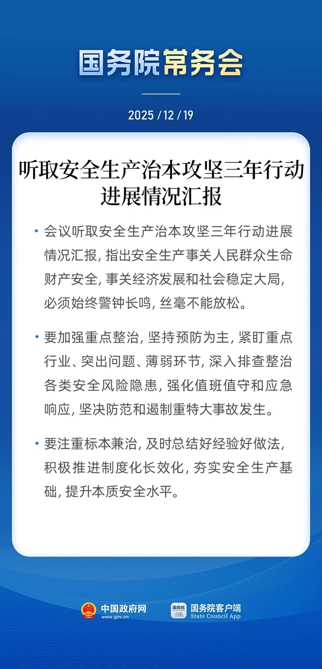 國務(wù)院常務(wù)會聽取安全生產(chǎn)治本攻堅三年行動進展情況匯報