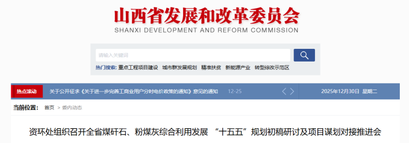 山西省發(fā)改委資環(huán)處召開煤矸石粉煤灰綜合利用規(guī)劃推進(jìn)會議