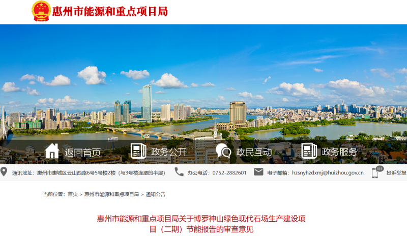 近日,廣東惠州能源和重點項目局發(fā)布惠州交投博羅神山綠色現(xiàn)代石場生產(chǎn)建設(shè)項目(二期)節(jié)能報告的審查意見。