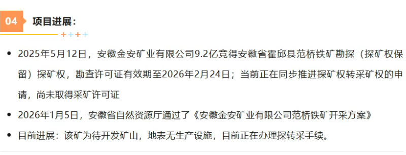 安徽金安礦業(yè)范橋鐵礦350萬(wàn)噸/年開(kāi)采方案獲批,開(kāi)發(fā)進(jìn)入快車(chē)道!