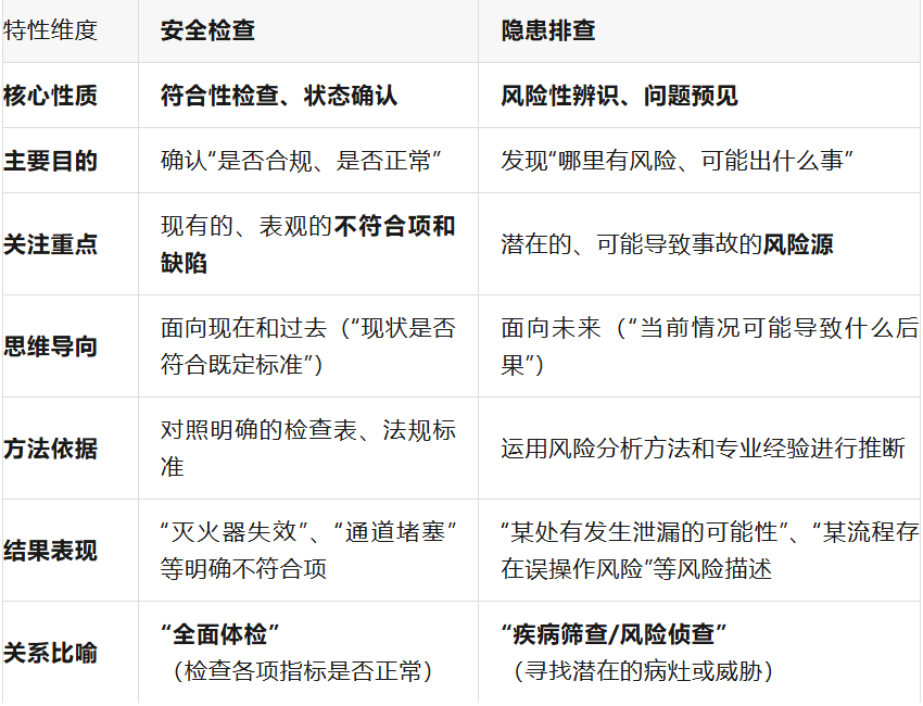 基礎(chǔ)與深化:安全檢查是隱患排查的基礎(chǔ)。很多隱患排查工作是在安全檢查過程中,通過更深入的觀察和分析發(fā)現(xiàn)的。一個表面的“不符合項(xiàng)”(如地面有油污),其背后可能隱藏著設(shè)備泄漏、維護(hù)不當(dāng)?shù)壬顚哟坞[患。
