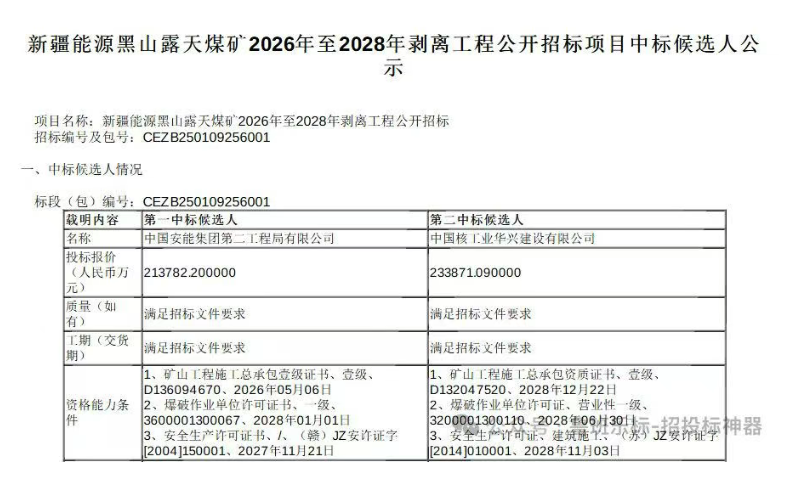 核心提示:中國安能集團中標21億煤礦項目,新疆能源黑山露天煤礦2026年至2028年剝離工程項目概況:新疆能源黑山露天煤礦2026年至2028年的剝