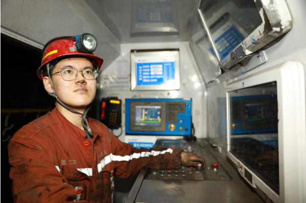 圖為員工在查看礦壓系統(tǒng)數(shù)據(jù)