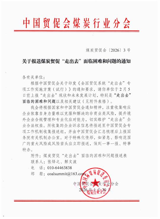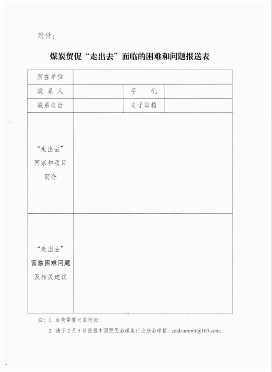 關(guān)于報(bào)送煤炭貿(mào)促“走出去”面臨困難和問(wèn)題的通知
