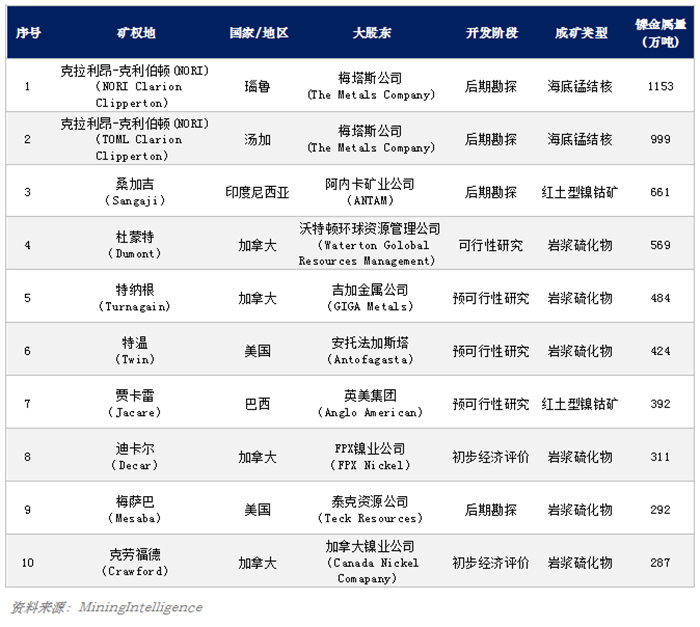 為找出未來可以提供鎳供應(yīng)的重要鎳礦,Mining.com網(wǎng)站和姊妹網(wǎng)站MiningIntelligence列出了全球10大未開發(fā)鎳礦項(xiàng)目,并按照探明和推定鎳金屬資源量進(jìn)行了排序。