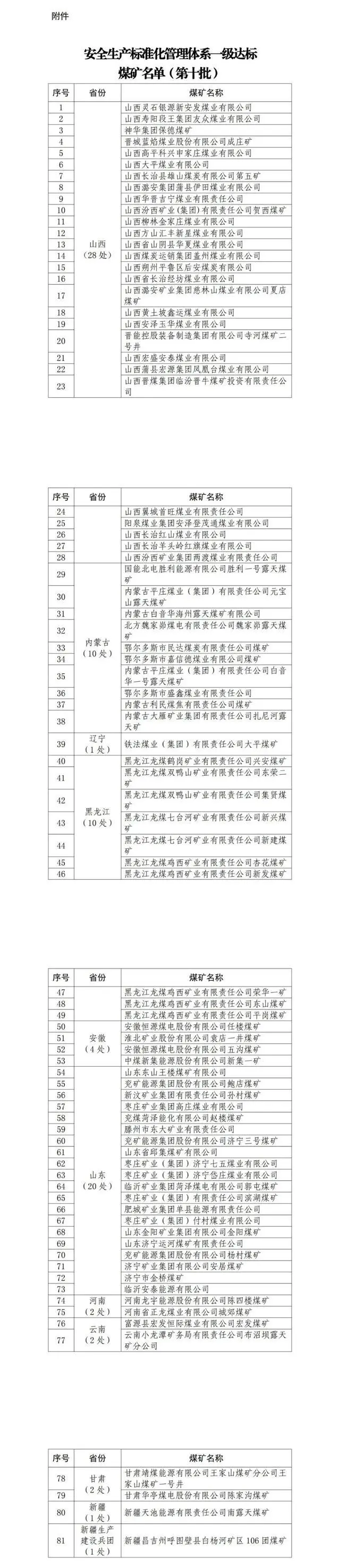 附件:安全生產(chǎn)標(biāo)準(zhǔn)化管理體系一級(jí)達(dá)標(biāo)煤礦名單(第十批)