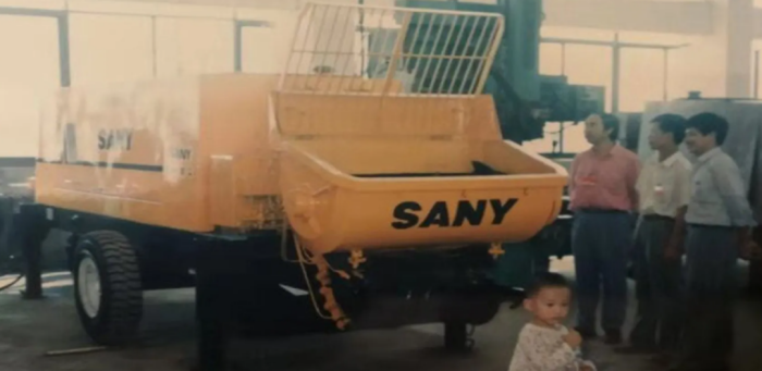1995年,三一重工生產(chǎn)的第一代混凝土拖泵