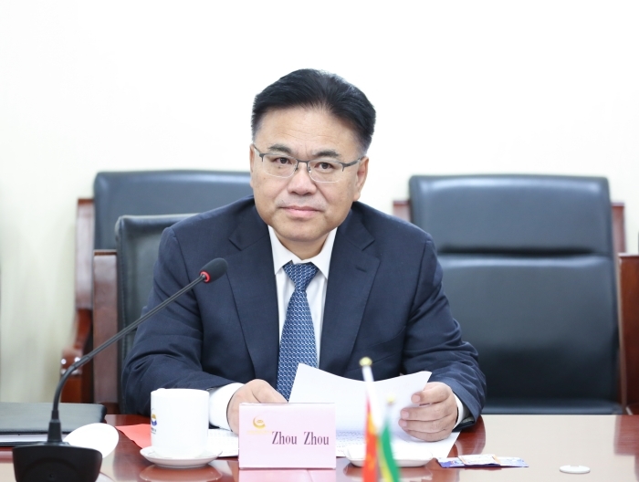 周洲對(duì)阿杜基一行的來訪表示熱烈歡迎,對(duì)剛果(布)在發(fā)展振興道路上取得的巨大成就表示熱烈祝賀,介紹了集團(tuán)公司基本情況及在剛果(布)產(chǎn)業(yè)發(fā)展情況。他表示,今年是中剛建交60周年,中國(guó)黃金集團(tuán)在中剛?cè)鎽?zhàn)略伙伴關(guān)系引領(lǐng)下,積極踐行“一帶一路”倡議,自2014年起長(zhǎng)期扎根于剛果(布),推動(dòng)剛果(布)黃金及有色金屬產(chǎn)業(yè)布局,在剛果(布)政府的大力關(guān)心和支持下,投資開發(fā)的索瑞米銅鉛鋅多金屬礦項(xiàng)目是剛果(布)第一座集采選冶為一體的現(xiàn)代化礦山,產(chǎn)出了剛果(布)第一塊銅板、第一塊鋅錠,開創(chuàng)了剛果(布)礦業(yè)開發(fā)的歷史先河。在努力創(chuàng)造經(jīng)濟(jì)價(jià)值的同時(shí),深度踐行ESG理念,積極履行社會(huì)責(zé)任,改善當(dāng)?shù)亟逃O(shè)施,完成多條交通線路及其橋梁修復(fù)工程,增進(jìn)了民生福祉,促進(jìn)了民心相通。衷心期盼雙方不斷深化業(yè)務(wù)合作,為促進(jìn)剛果(布)經(jīng)濟(jì)教育發(fā)展、譜寫中剛友好新篇章作出更大貢獻(xiàn)。