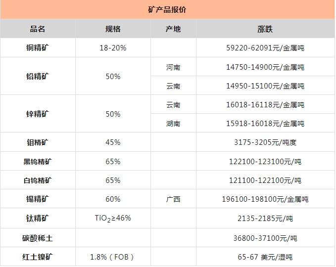 礦產(chǎn)報(bào)價(jià)、資訊