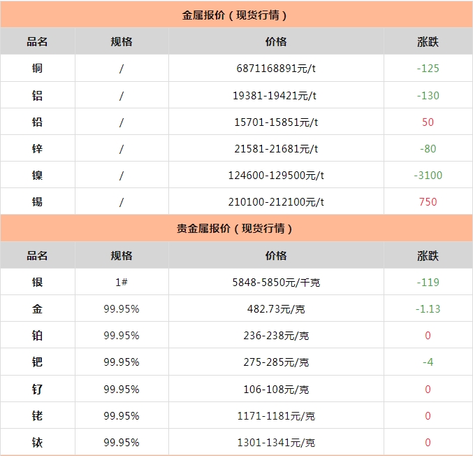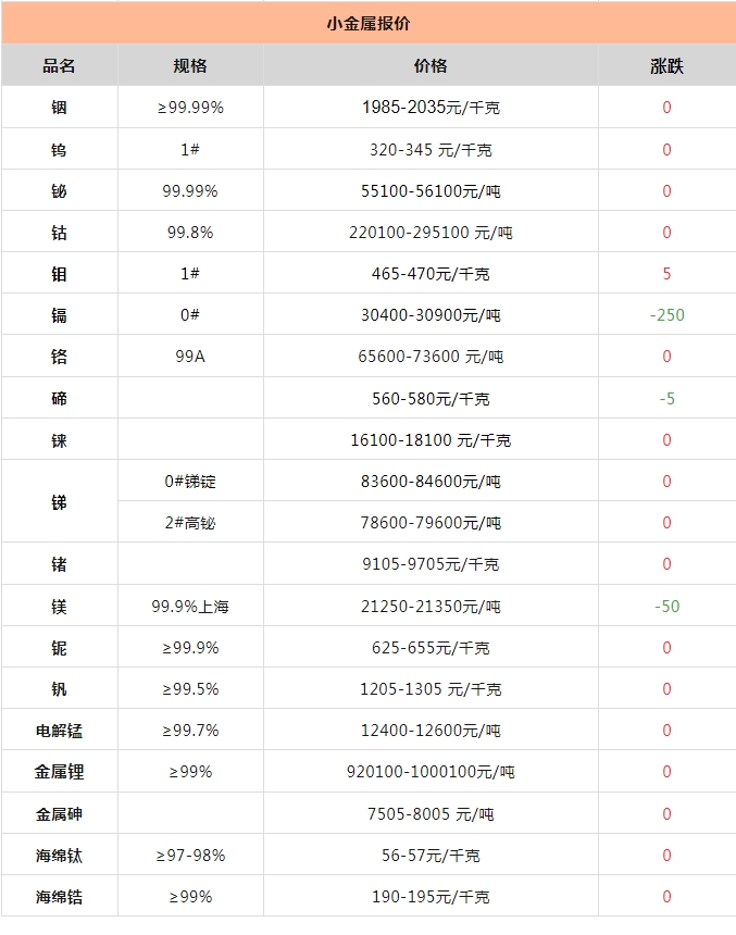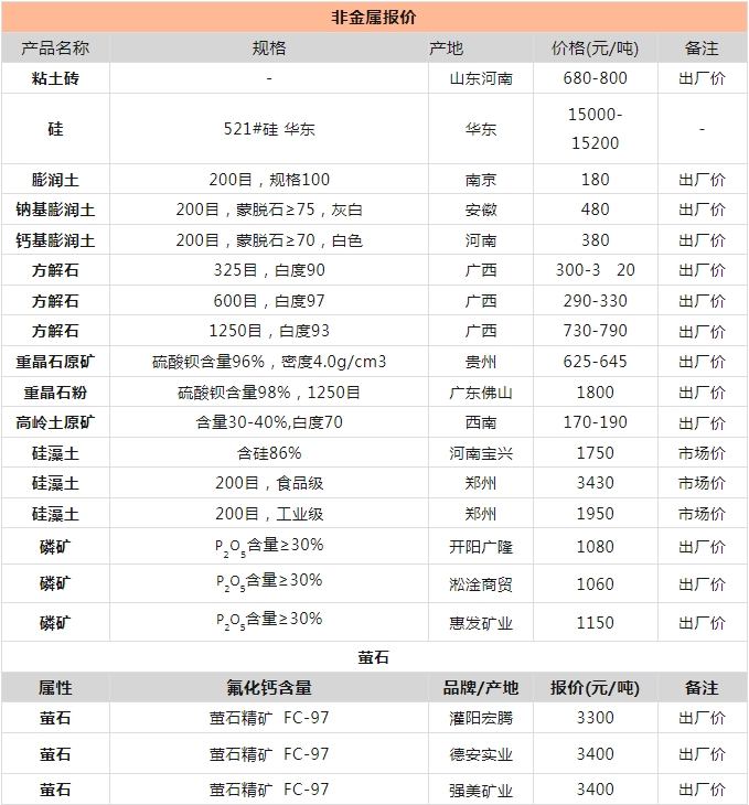 科礦|2月10日金屬、礦產品及非金屬現(xiàn)貨行情報價單